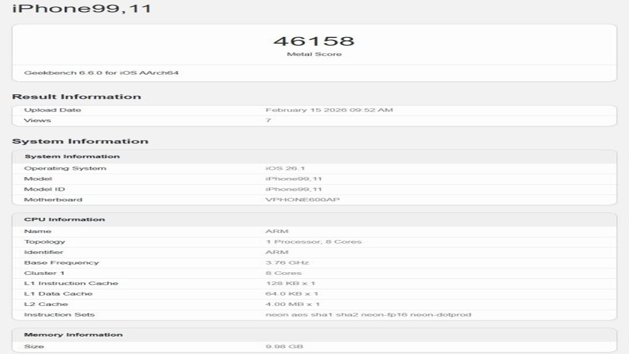 • Geekbench 6’daki benzersiz tanımlayıcı iPhone99,11 iken, iPhone 16e iPhone17,5 olarak tanınıyor.