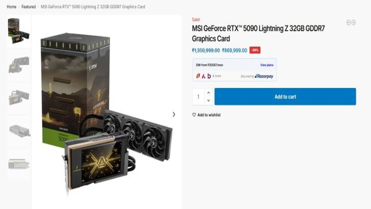 MSI RTX 5090 Lightning Z çekilişle listelendi Hindistan fiyatları
